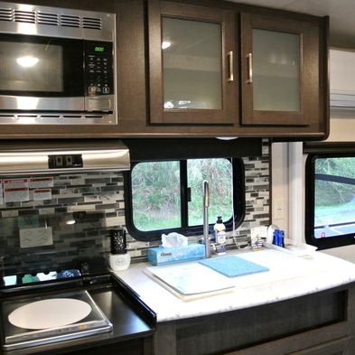 トレーラーハウスには専用ウッドデッキがありBBQも楽しめます。